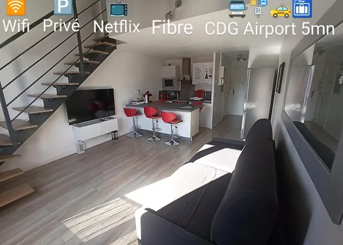 このDuplex Autonome Cosy A Paris Roissy Cdgアパ-トメントアパ-トは,パリ シャルル・ド・ゴ-ル国際空港から5km離れたところにあります.